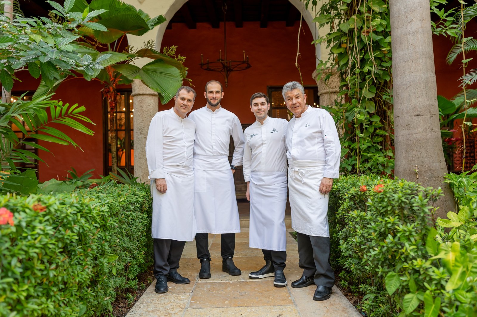 El martes 10 de marzo en la Capilla de Sofitel Legend Santa Clara Cartagena, los chefs Marcon mostrarán el bonbon de remolacha al saúco con mousse de hígado de ave, espárragos en velouté de hierbas frescas, robalo con salsa de zanahoria fermentada y no puede faltar su emblemática res en dos cocciones, acompañada de puré de papa al cistre.